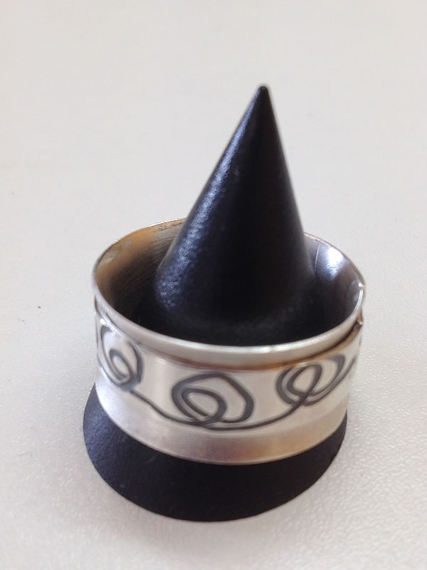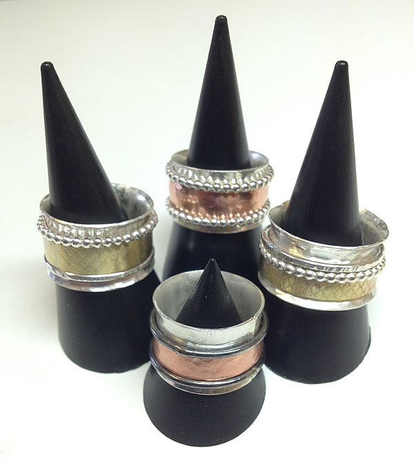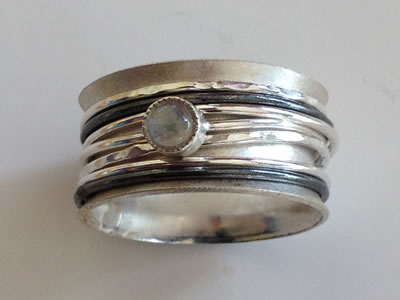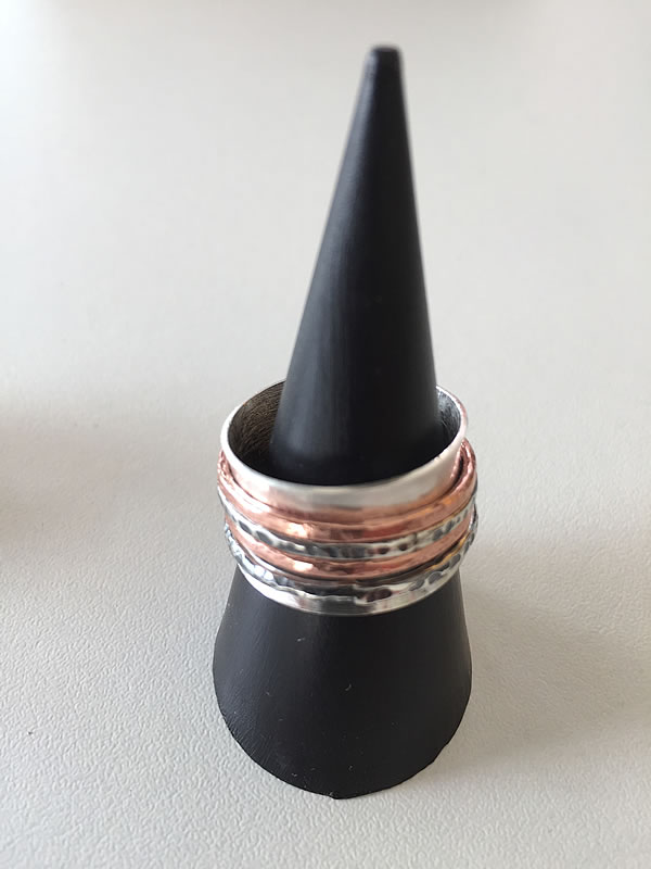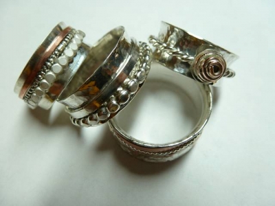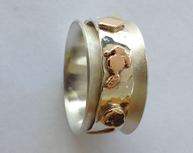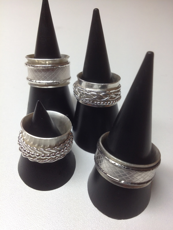 - Exclusief het zilvermateriaal van de basisring én van de draaiende bovenring(en): Hou rekening met ongeveer tussen de € 25,- en € 50,- extra. Hangt af van het uiteindelijke gewicht van de ring.